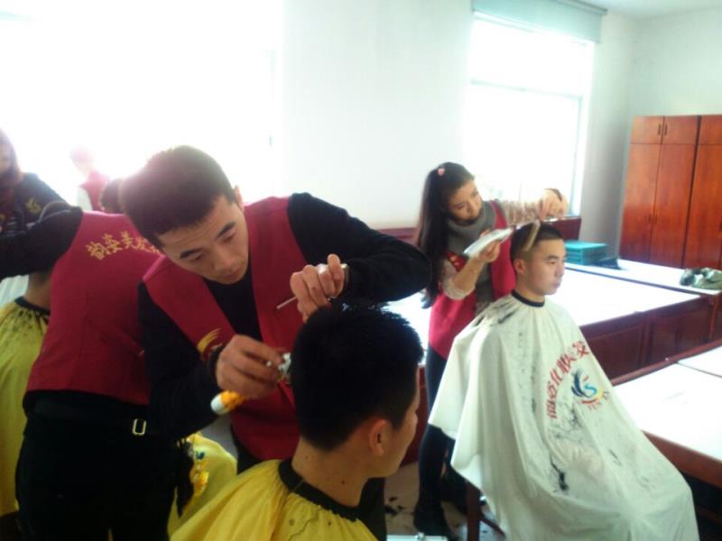 威海美发学校为军人理发