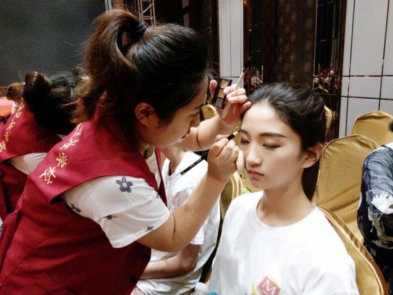 本次大赛特约威海化妆学校-韵姿为指定的化妆造型机构,学员们在现场根据每名模特的长相、气质、服饰等特点为其打造形象。来自威海当地的模特佳佳和小编说‘开始我知道这是威海化妆学校的学生为我化妆时,我有点紧张,担心画不好影响我比赛,可我没想到给我画的太满意了,我参加过很多模特大赛,以前都是有多年经验的化妆师为我化妆,但是我还是满意今天的妆面和造型,谢谢韵姿化妆学校,谢谢给我化妆的小姐妹,为他们点赞。’刚化完妆的5号选手瞪着惊奇的眼光说‘啊,真的吗,他们真的是化妆学校的在校学生吗,哇!厉害,我以为都是老司机呢嘻嘻。’边说边指着旁边的一个男生又说‘还是一个男生给我画的,我太满意了,棒棒哒。’小韩同学听后小脸有些泛红。